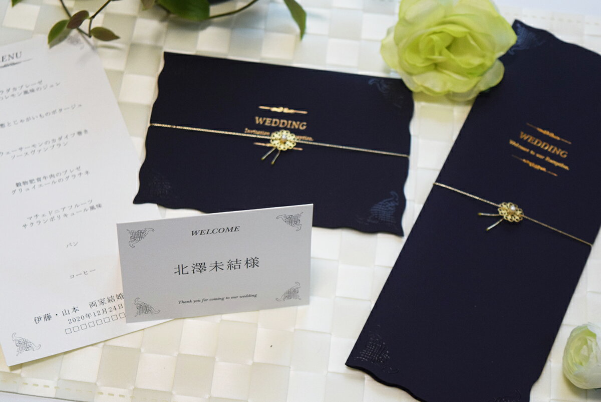 2022年11月1日より小部数1~9部(10セット未満)のご注文、 お急ぎ納品(2週間以内の納品)にはオプション料金が別途発生いたします。 該当するご注文に関しましては、各オプションも併せてご注文くださいませ。 ご理解ご協力の程、何卒よろしくお願いいたします。 繊細な柄に上品な光沢のあるカード。 どんなテーブルコーディネートにも ピッタリ合う商品です。 【商品詳細】 結婚式 席札 W100mm×H74mm(立てた状態) 特殊漢字も対応可能です。 パソコン、スマートフォンで変換されない漢字は手書きしたものを写真でお送りください。 席札と同じデザインで、席次表・メニュー・ゲストブックもございます! ※小部数1~9部(10セット未満)でのご注文の場合、校正料金が発生いたします。 商品と併せてご注文くださいませ。 校正料金 ※お急ぎ納品(2週間以内の納品)をご希望の場合、特急料金が発生いたします。 商品と併せてご注文くださいませ。 特急料金 【ご注文の流れ】 まずはカートより必要枚数分ご注文ください。 ご注文後、席札作成フォームをメールにてお送りいたします。 必要箇所をご入力いただき、ご返信いただけますと幸いです。 基本的にはデータでお名前をお送りいただきましたら確認事項が無い限り、 そのまま印刷の手配をさせていただきます。 手書きの原稿をお送りいただいた際には、メールにて、 席札原稿をお送りいたしますので文字に間違いがないかをご確認ください。 パソコンをお持ちでない方もご安心ください! 【ご要望がございましたらご相談ください!】 ご不明点などございましたら、お気軽にお問い合わせください。 ベテランスタッフが対応いたします。