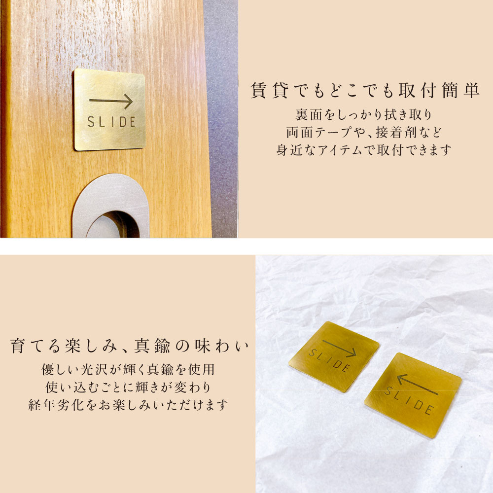 真鍮 サインプレート SLIDE ドアプレート ゴールド ブラス 表示 店舗 スクエア