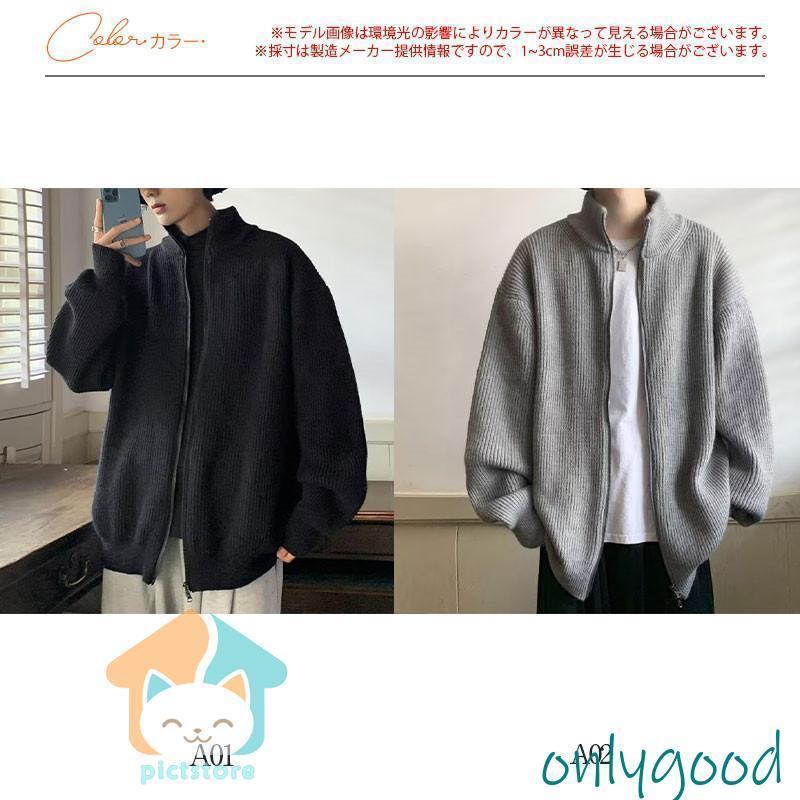 ニットカーディガン メンズ カーディガン ジャケット 長袖 秋冬 ゆったり 無地 ジップアップ 立ち襟 ニットセーター 前開 カジュアル ブルゾン