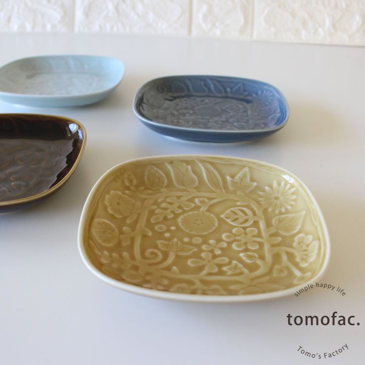 波佐見焼 フラワーパレード レリーフ 角プレート 小 シンプル 結婚祝い 敬老の日 プレゼント 贈り物 ギフト 北欧柄 お洒落 ハサミ 食器 器 磁器 陶器 日本製 おしゃれ 無地 カラフル かわいい シンプル 誕生日 結婚祝い 新居祝い 新築祝い ラッピング