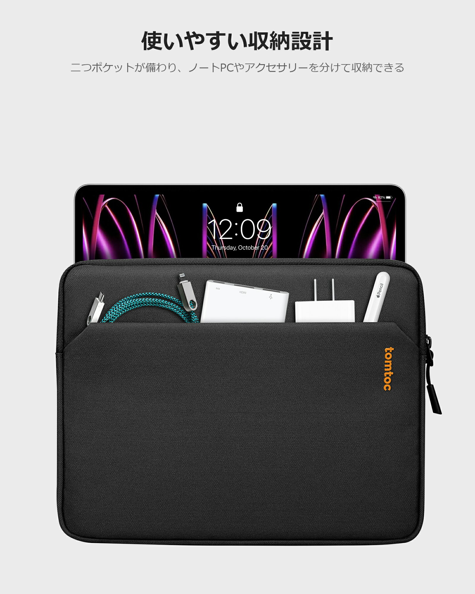 tomtoc 13インチ iPad Pro M4 / iPad Air M2 2024 ケース iPad Pro 12.9インチ 6 5 4 3世代 M2/M1 インナバッグ タブレット Surface Laptop Go 3用 薄型スリーブケース アクセサリーポケット付き マジックキーボード iPad Pencil スマートキーボード Folio装着対応