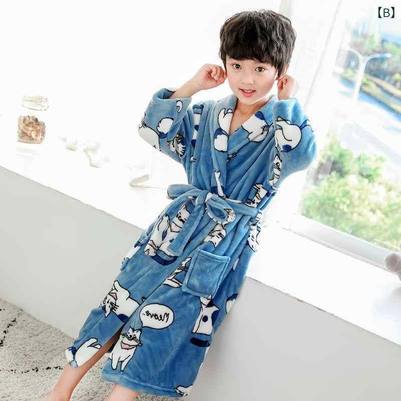 子供用バスローブ 男の子 フランネル キッズパジャマ 中大童 ルームウェア 厚手 暖かい 部屋着 寝間着 かわいい 直升機 大脸猫 胡萝卜 白小狗 松鼠 カーキ 青緑 墨绿 グレー 緋紅 海藍 米白 藏青 字母老虎 藍小狗