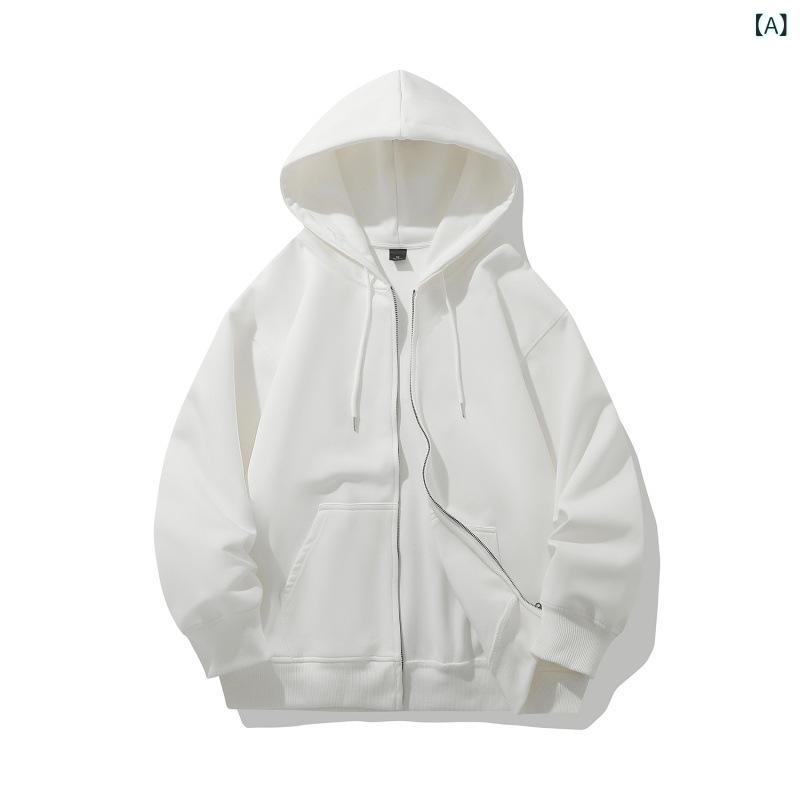 カーディガン メンズ スウェット 春秋 無地 フード付き トップス 男性用 ジャケット アウター 普段使い 長袖 ポリエステル スポーティー カジュアル 白 黒 紺
