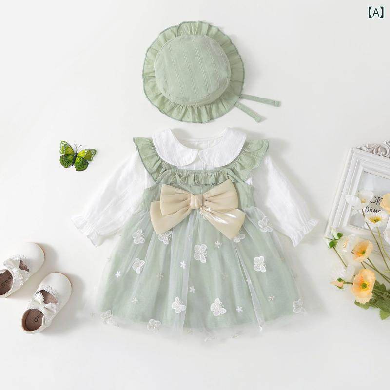 ・カテゴリ: ワンピース・素材: 綿100%・対象: 女児・柄: 無地・スタイル: 長袖・スカートの形状: Aライン・色: 浅緑, ピンク, 空色, ワインレッド, Tシャツ・サイズ: 66cm, 73cm, 80cm, 90cm, 100cm