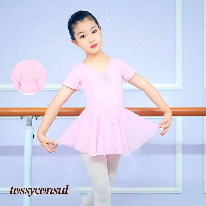 バレエ レオタード 子供 キッズ ジュニア ワンピース 半袖 スカート付 レッスン着 ダンス バレエ衣装 幼稚園 小学生 伸縮 新体操 練習 発表会 プレゼント ギフト 新生活