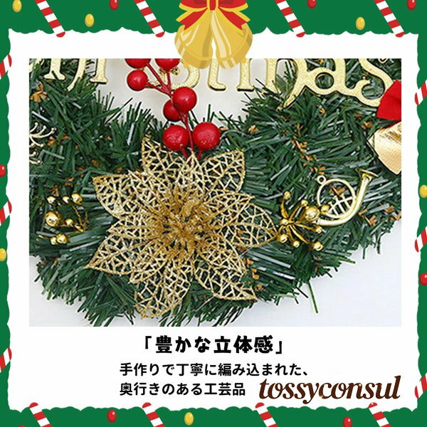 商品詳細: 特徴:クリスマス雰囲気満点 リースはドアに飾り付くだけで、クリスマスの雰囲気に一瞬で包まれます。また、写真を撮る時に壁に掛けていい背景にもまれます。華やかなクリスマスを楽しんでください。このクリスマスガーランドは、家、パティオ、玄関ポーチ、玄関ドア、窓、壁、玄関などに完全に掛けられ、クリスマスの雰囲気を高めます。クリスマスをテーマにしたメリークリスマスサイン、布をぶら下げ、非常に祭りと喜び。 丈夫な素材 プラスチック+リボンとPVC材料で作られます。装飾的な花輪は、耐久性のある素材で作られ、キラキラな色と組み合わせたデザインは高級感と華やさを溢れています。見た目はリアルで自然で、ナチュナルカラーで仕上げた飾りです。繰り返し使用できます、カラフルですが、色あせず、よく保存したら、来年も使えるガーランドです。 使いやすい クリスマスリースフックでかけるだけでとても簡単で便利です。また、簡単に取り外せますので、ご家族と一緒に楽しくデコレーションでき、休日を思う存分楽しめます。 幅広い用途 これらのクリスマスガーランドは、クリスマス、屋台、舞台、文化祭や感謝祭をテーマにしたパーティー、カーニバル、家族の集まり、また、あなたのリビングルーム、ショーウィンドウ、商品陳列フラッグ、感謝祭の木、窓、ドアまたは任意の場所に表示したいを飾ることができますように、ほとんどの場面で適用することができます。 完璧な装飾 完璧なアクセサリーは、お祭りの環境を作るのに役立ちます。 面白いクリスマス要素のパターン設計、クリスマスの装飾的なサインは素晴らしい装飾、素敵な写真の小道具です。ご家族や友人への理想的なクリスマスと新年のプレゼントにもオススメです。納期について ◆納期について商品ページに記載されています。ご参考の上でご購入ください。◆注文個数によりお届け日が変わることがあります。至急の場合、予め使用希望日をご連絡ください。◆天候や交通事情等の都合により配送期間は前後いたします。予めご承知下さいませ。 在庫について 在庫数の更新は随時行っておりますが、お買い上げいただいた商品が、品切れになってしまうこともございます。その場合、お客様には必ず連絡をいたしますが、万が一入荷予定がない場合は、キャンセルさせていただく場合もございますことをあらかじめご了承ください。 返品・交換について ご注文発送手配後、後の住所変更、サイズとカラーの変更、キャンセルはお受けできません。万が一お届け商品がご注文内容と異なったり、欠陥、汚損があった場合、交換、もしくは返金させて頂きます。 注意事項 ▲サイズは素人採寸のため、1-2cm前後の誤差が生じる場合がございます。予めご了承下さいませ。 ▲モニターの発色の具合によって実物とと色が異なる場合がございます。実物に近いカラーはカラーバリエーションをご参考ください。 ▲商品到着時に箱が破損、商品破損、また梱包に異常があった場合は、発送中の破損事故となりますので、受け取り拒否でお願い致します! ▲商品発送後の住所変更、サイズとカラーの変更、キャンセルはお受けできません。 ▲初期不良品以外の交換、返品、返金はお受けできませんので、予めご了承ください。 ▲イメージ違い、サイズ及びカラーの買い間違えなどによる返品、返金、交換はお受けできません。予めご了承ください。 ▲万一汚れや破損などの不良品が届いた場合、必ず到着日を含め7日以内にご連絡をください。 ▲現在、弊ショップの包装につきましては、簡易包装にて郵送しておりますので、プレゼント用のラッピング包装、熨斗の添付はできません。ご了承の上で、お買い上げください。 ▲輸入品のため、メーカーや仕入先の在庫保管方法の違いや、長距離輸送や航空輸送により、多少細かなキズや汚れ等が見られる場合がございます。 ▲ご存知の通り海外の工場での縫製は日本の工場と比べますと、細かい点で雑に見えるものがございます。不良品ではありません。