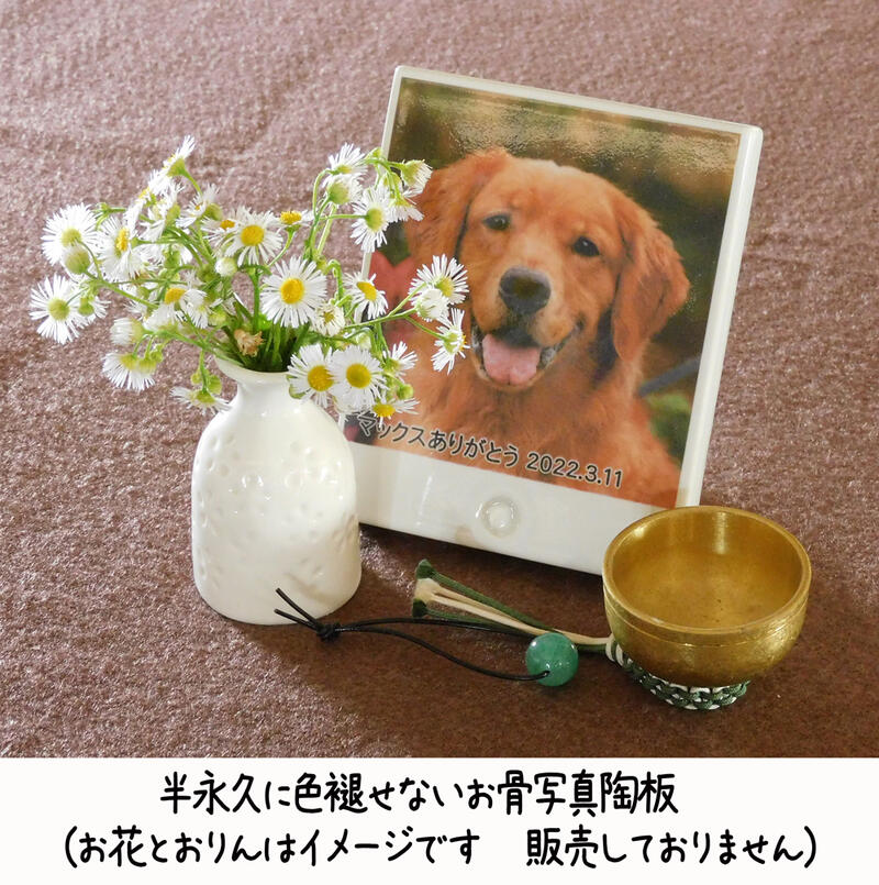 うちの子の思い出を ペット供養のためのお骨と一体になった写真陶板です。 フォトセラメモリー pc1 約110×90×13mm 大切な想い出を永遠に。色褪せることなく、お骨入り手元供養。写真 陶板 お骨 お葬式 お墓 祭壇 メモリアル 位牌 納骨