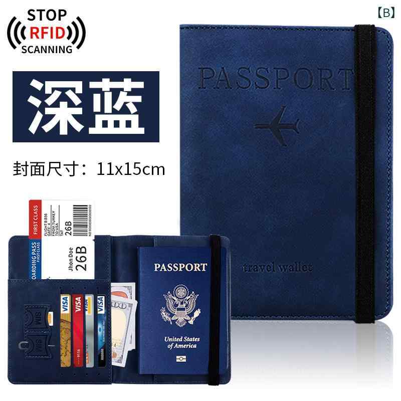 パスポートケース RFID スキミング防止 PUレザー カード収納 航空券 貴重品 収納ケース 無地 トラベルグッズ 男女兼用 黒 深青 グレー ピンク 水色 茶色 赤 緑(x3)