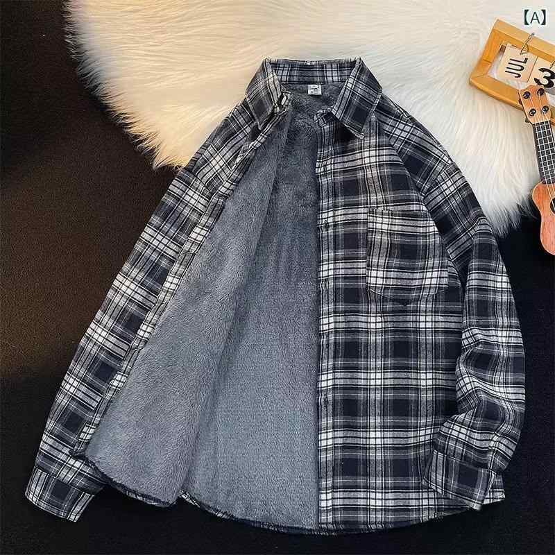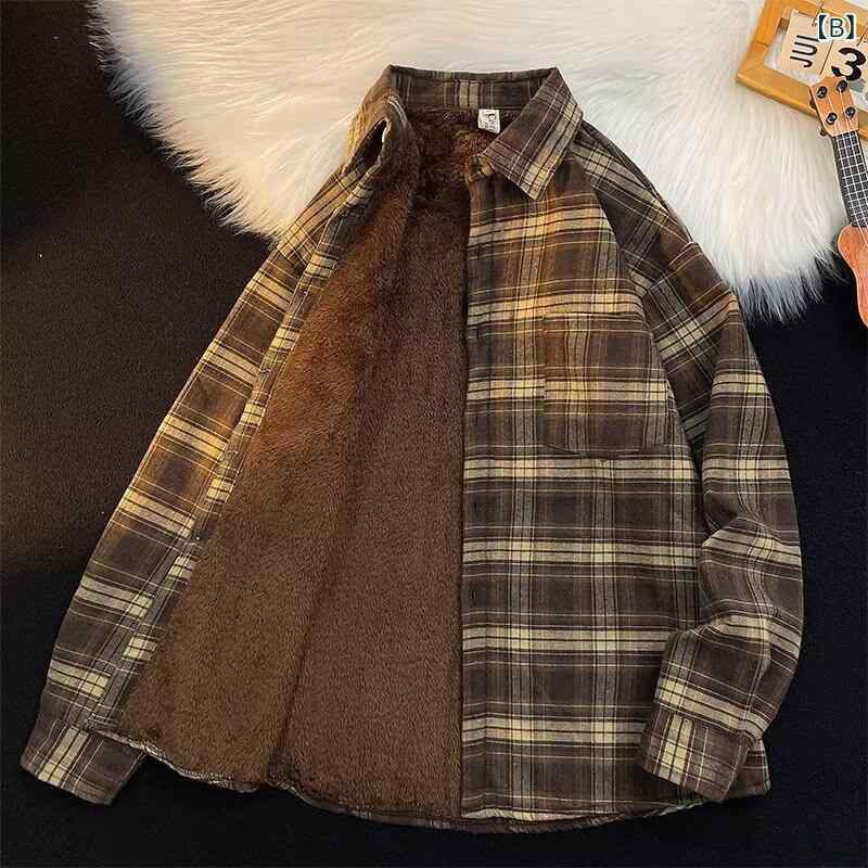 シャツ メンズ 男性用 格子柄シャツ 長袖シャツ 裏起毛 秋冬 暖かい ゆったり 普段使い 青色 ブルー 深い茶色 ダークブラウン