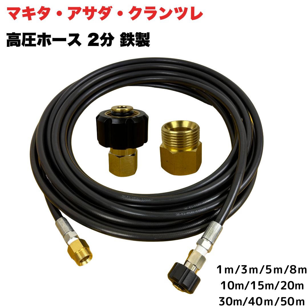 【選べる長さ1~50m】 マキタ アサダ クランツレ等用 M22 軸14mm クイックカプラ付き 高圧ホース 1/4 (2分) 5m 鉄製 高圧洗浄機 洗車 窓 外壁 網戸 外壁 ベランダ 延長用