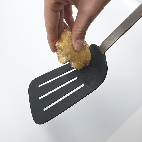●強火調理・鉄なべに最適!溶けない・変色しない ●薬味おろし付き!ショウガやニンニクのおろし もできるので調理もスムーズ。 商品詳細 サイズ・重量 サイズ:縦35×横8.3×厚み6.5cm 重量:85g 材質・仕様 樹脂部:PPA(ナイロン) 持ち手部:ステンレス鋼・ABS樹脂 耐熱温度:約270℃熱に強い!!鉄フライパン・鍋に使える!薬味おろし付き