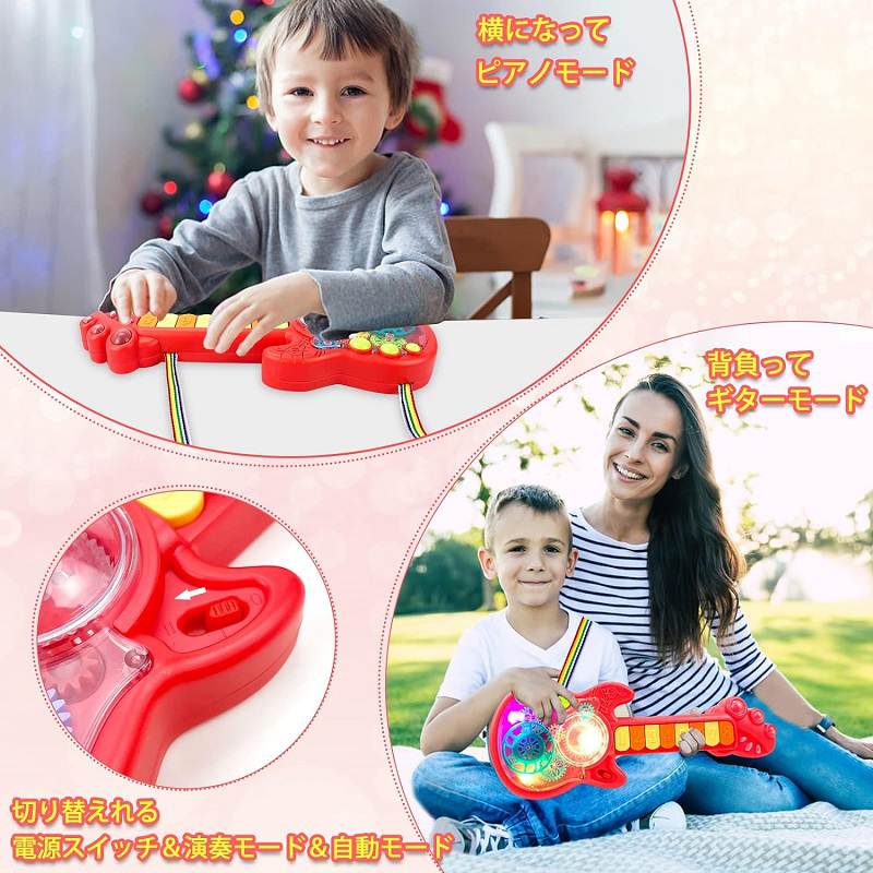 キッズ ギター エレキギター ギター おもちゃ 子供 ピアノ 光る 楽器おもちゃ 音楽おもちゃ 初めてのギター プラスチック製 子供おもちゃ 楽器玩具 子供の日 誕生日 プレゼント ギフト