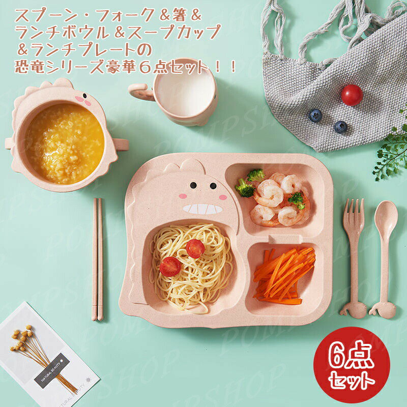 豪華6点セット!ベビー 食器セット 離乳食 ベビー食器 赤ちゃん 恐竜 かわいい すくいやすい キッズ 男の子 女の子 こども ひっくり返らない お食事セット ベビー用 赤ちゃん用 プレート ボウル フォーク スプーン 箸 スープカップ 出産祝い