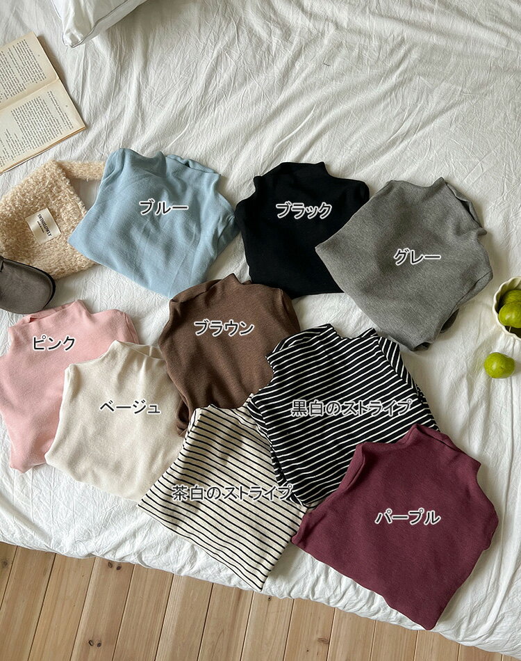 長袖 ロンT キッズ Tシャツ ハイネック長袖 2枚 9色 トップス こども 小学生 男の子 女の子 子供 ベビー ストライプ 無地 かわいい おそろい おしゃれ 冬 入園準備 部屋着 トップス 90 100 110 120 130 140 150cm