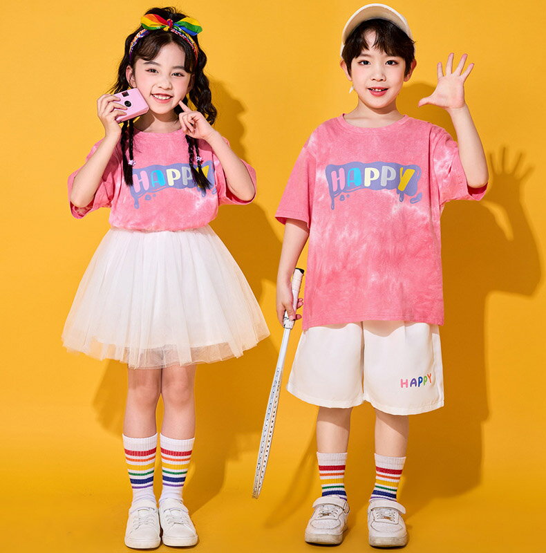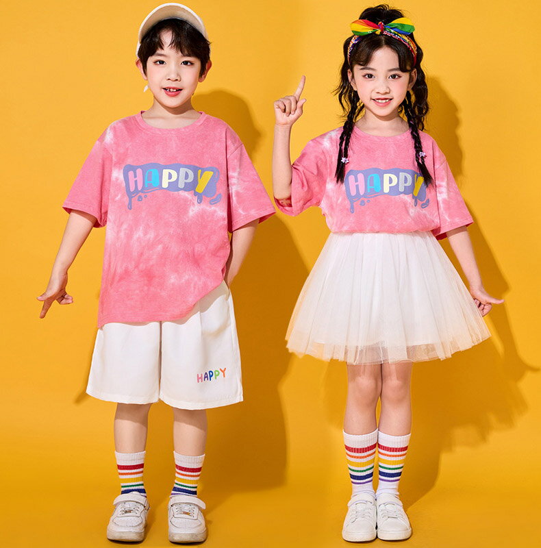 ピンク ホワイト ミニスカート チアガール キッズ ダンス衣装 子供服 可愛い 半袖 トップス メッシュスカート 短パン ショーツ 女の子 男の子 HIPHOP JAZZ 派手 幼稚園 応援団 発表会 舞台服 個性派 K-POP 演出服 練習着 団体服 ステージ衣装 110-180cm