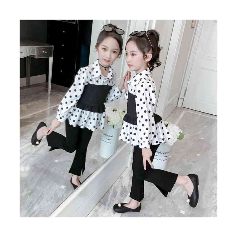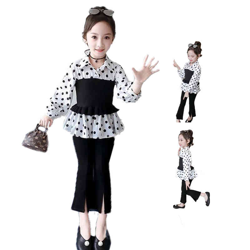 ドットブラウス パンツセット キッズ 春秋 二点セット 女の子 ロングパンツ フレアパンツ セットアップ フリルブラウス ドット柄 おしゃれパンツセット シンプル カジュアル おしゃれ 送料無料