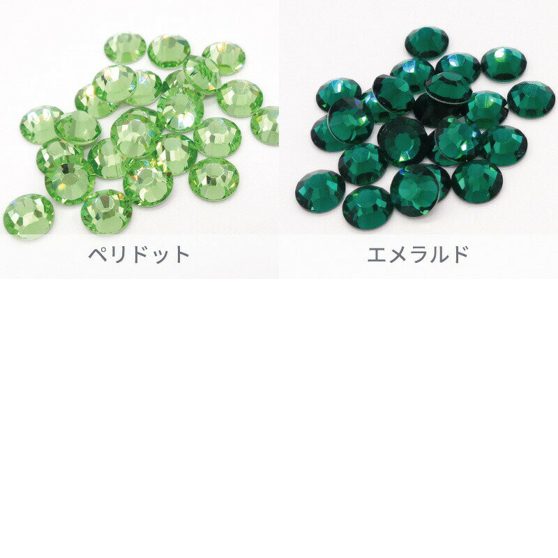 高品質なガラス製フラットバック(底平)ストーンです。 アクリル製より透明度が高く、高級感のあるきらめきです。 セルフネイルやiPhoneケースのデコ、レジン小物への封入、社交ダンスの衣装装飾など、幅広くご使用いただけます。 学園祭・ハロウィンなどでのアイメイクのワンポイントにもおすすめです。 ◇プレシオサとは? プレシオサ(PRECIOSA)は、チェコで一番有名なクリスタルガラス製造メーカーです。 チェコ共和国はガラス産業が盛んで、プレシオサはボヘミア地方が発祥です。 ラテン語のPRECIOUS(貴重な、上品なという意)に由来しており、その名の通り世界トップクラスの品質とハイセンスなデザインで世界中を魅了しています。 また、プレシオサクリスタルは、独自の機械による繊細なカッティングと特殊な加工、そして光の反射加減によって、虹色の美しい輝きを放つのが魅力です。 カット面やカット数でランクもあり、カラーバリエーションが豊富な点もプレシオサの人気のひとつです。 当店はプレシオサの正規認定販売店として、数多くのプレシオサストーンを販売しております。 ◇スワロフスキーとの違い スワロフスキー・クリスタルと同じ「クリスタルガラス」で、品質はスワロと同等レベルです。 よく見ないと差がほとんどわからないほどの美しい輝きです。 ※カットは異なります。また、同じ名称でもニュアンスが異なるカラーがございます。 (プレシオサの方が若干濃く落ち着いたトーン、と一般的に言われています。) サイズはスワロとほぼ同じです。 プレシオサ品番 (SS2〜SS4) 438-11-612 ※8面カット (SS5〜SS20) 438-11-615 ※15面カット (SS30〜SS48)438-11-618 ※18面カット MC Chaton Rose MAXIMA サイズ SS6(1.9mm〜2mm) 入数 1440個 カラー ペリドット エメラルド →その他のカラーはこちら ホイルの種類 デュラホイル(こすれ等に強いプレシオサ独自のホイル)※ホイルの色は白〜薄金です。(ロットによって異なります。) その他の特長 本製品はNO LEAD(無鉛)です。 ご注意ください ※お使いのブラウザや画面設定により、商品のカラーが実際と異なって見える場合がございます。※海外からの輸入の為、為替の変動等に伴い価格を変更させていただく場合がございます。 ※裏に糊がついた商品です。 →のりで接着するタイプ(ラインストーン MAXIMA)はこちら グロスパック販売商品について ※プレシオサやスワロフスキーのグロスパック商品につきましては、グロスパック内に商品の割れや変形、他色の混入、数量のばらつきが稀にある場合がございます。 当店では、グロスパック商品はメーカーより入荷したそのままの状態(未開封)での販売の為、中身を確認する事ができません。その為お求めやすくさせて頂いております。 また、グロスパックの外装に汚れがある場合もございます。 尚、グロスパック内商品の破損が多い場合は交換をさせて頂きますので、ご連絡ください。 (返品・交換には内容物すべて及びパッケージが必要となりますので、ご使用前にご連絡ください。) 使用用途 ドレス・ダンス衣装・コスチューム衣装の装飾、イベントでのメイク この商品の関連商品 ・<デコ作業のお供に>三角ビーズトレイ/1辺約75mm/5枚入 ・<ストーンの飛び散り防止に>BEADSMITH ビーズマット/BM11/約36x28cm/1枚 ・<衣装へのストーン貼り付けに>ホットフィックス アプリケーター