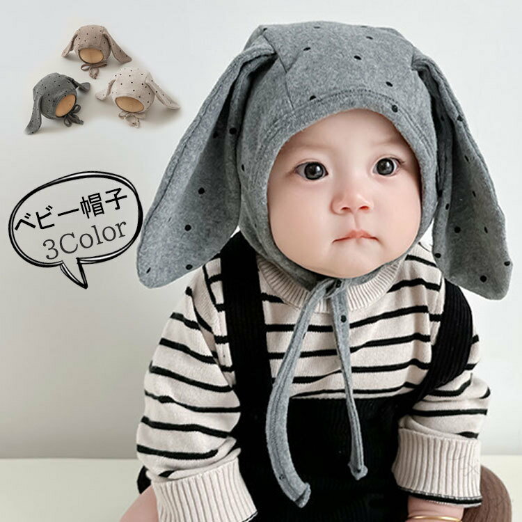 ベビー帽子 うさ耳帽子 うさぎ かわいい ドット柄 韓国風 ウサ耳キャップ ソフト素材 幼児用 春秋冬用 女の子 男の子 耳保護 ストラップ付き 子供用 キッズ 暖かい 調整可能 人気ファッション 3色展開