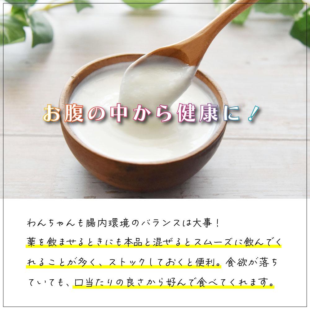 ご褒美のおやつに。食欲不振のわんちゃんに。作り方カップに水 (約60ml) を加え、フタをしっかりと閉め、全体が混ざるまで約30秒間振ってください。本製品1個(25g)で約85gのヨーグルトが作れます※本品に水を入れて調理する(混ぜ合わす)際は必ずワンちゃんの食べる直前に行ってください。※食べ残ったヨーグルト・クリームは冷蔵庫で保存し48時間以内に与えて下さい。※本品に水を入れてから常温で長時間保存すると酵母の働きによりボリュームが増し蓋が開いたり破裂し内容物が溢れる恐れがあります。※製品は直射日光を避け涼しく乾燥した場所にそのまま保管してください。※推奨量を超えると、お腹が緩くなる可能性があります。サイズ個装サイズ:5×5×15cm重量個装重量:35g素材・材質原材料:ヨーグルトパウダー、ホエイ、スキムミルク、植物性脂肪(パーム、ココナッツ)、バターミルク、小麦粉、ブドウ糖、コーンスターチ、炭酸カルシウム、重炭酸ナトリウム、マンナンオリゴ糖、塩化ナトリウム、酸化マグネシウム、リン酸一カリウム、出芽酵母、ビタミンE、バニリン、バチルス・ベレゼンシス成分:粗タンパク質 16.6%、粗脂肪 7.4%、粗繊維 7%、粗灰分 6.3%仕様エネルギー80kcal/個給与量目安:小型85g/中型170g/大型255g賞味期間:製造日より540日生産国イタリア広告文責:三山木子有限会社Tel 06-6345-7927fk094igrjs