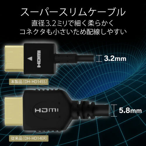 ★ポイント最大16倍★【在庫品は翌営業日発送】-ato2027-6805 スーパースリムHDMIケーブル 1m 1ケ 20276805 エレコム DH-HD14SS10BK -【@オフィス】