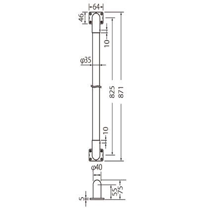 特徴 ●室内用補助手摺 ●サイズ:φ35×800mm ●高さ:75mm ●色:AG・Mオーク ●材質:タモ集成材、亜鉛合金 ●コード番号:03844043 手すり 手すり棒 手摺り 仕様 サイズ 800mm カラー AG/ミディアムオーク BR510S