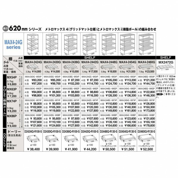エレクター メトロマックス4 W1215×D620×H1886mm MAX4-2448G・MX74P-4 1P
