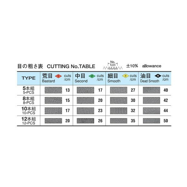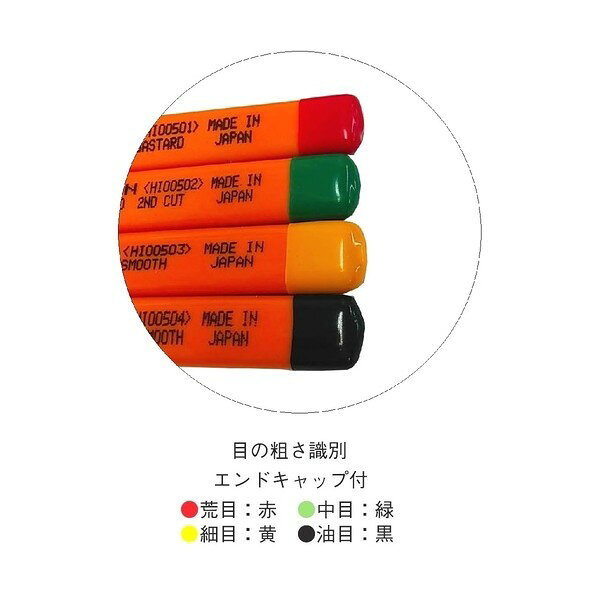 商品画像はイメージ画像です。実際とは異なる場合がございます。 特徴 ■特徴 目立てが鋭く、耐久性に優れています。 半円形面の1面にのみ刃が刻まれています。 ■用途 鉄をはじめ、あらゆる金属の加工に。 ■材質 炭素工具鋼(SK-2) ■注意点 目詰まりした場合はブラシ等で取り除いてお使いください。 仕様 重量 270g 入数 10本 HM01003