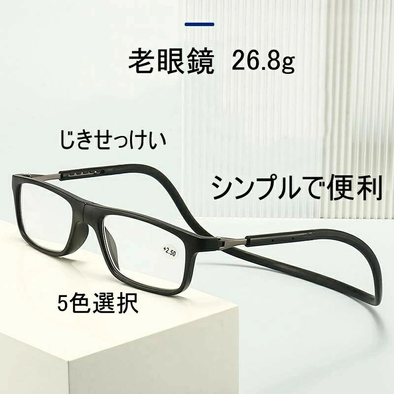紛失防止老眼鏡 強力マグ スマート 首掛け式老眼鏡 シリカゲル 折りたたみ 軽いスマートグラス PCメガネ 軽い コンパクト スタイリッシュ 超軽量 男女用 鼻めがね 丈夫 掛けやすい 40代 50代 老眼鏡 全5色