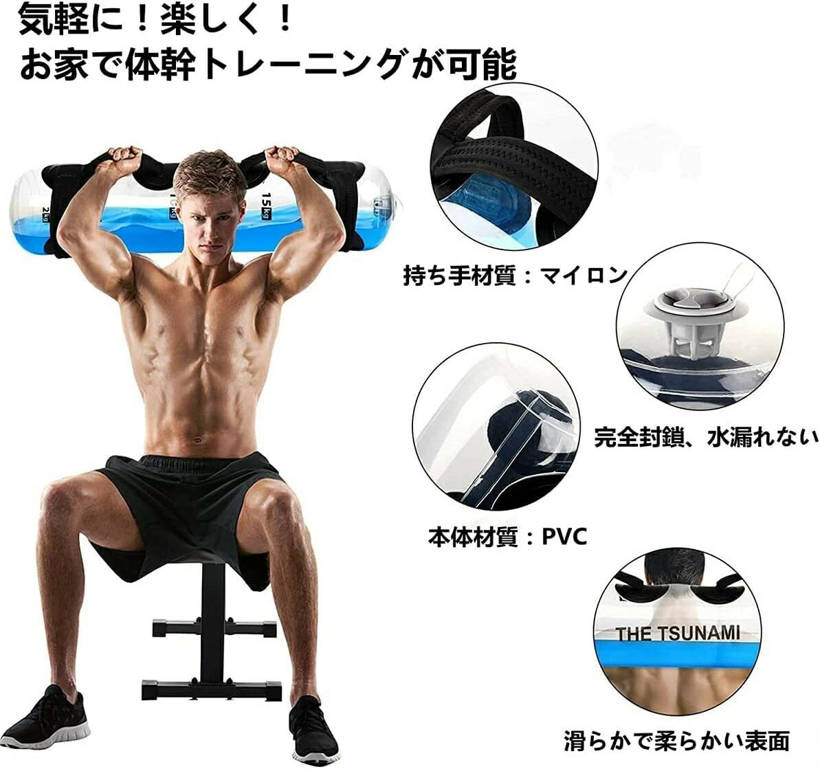 商品詳細 商品紹介 商品情報 重心が移動するので今まで以上に鍛えられる!通常のダンベル等とは違い、水が左右に揺れるので体幹トレーニングに使用することができます。 水量を変えて自分に合った負荷でトレーニング! ダンベルと違い、常に自分のベストな重さに調整可能。軽い運動から競技力を高めるための本格的なスポーツトレーニングにも対応。また何個もダンベルを持つ必要もありません。 体幹強化はもちろん、様々なトレーニングに対応出来るようグリップが複数ついています。これ一つで複数のトレーニング&体幹強化まで行えます。 通常のダンベルのように持ち上げるだけでなく、バーベルとして肩に載せてスクワットに利用したり、各部位の集中的なエクササイズも可能。腕や脚など気になる部位にピンポイントに利用したり、おなか周りや背筋強化などにも利用できます。 ご注意 ●サイズ詳細等の測り方はスタッフ間で統一、徹底はしておりますが、実寸は商品によって若干の誤差(1cm〜3cm )がある場合がございますので、予めご了承ください。 ●商品の色は、撮影時の光や、お客様のモニターの色具合などにより、実際の商品と異なる場合がございます。あらかじめ、ご了承ください。 ●運送事故により箱が潰れる可能性がございます。 ●お問い合わせとメールを承りますので、質問や苦情を相談して有効に解決しましょう。