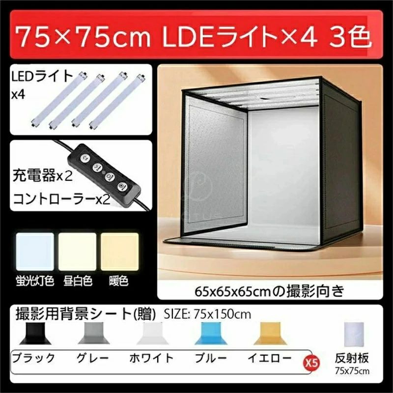 撮影キット 撮影ボックス LEDライト付 40×40 60×60 75×75cm 折りたたみ可能 調光可能 撮影スタジオ 簡易スタジオ 撮影ブース 撮影用照明 商品撮影 背景 おしゃれ 5色バックスクリーン 大きいサイズ