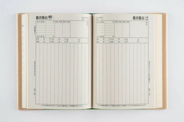 特徴 [高橋の日記シリーズ]ベーシックサイズからコンパクトサイズまで、使い方に合わせて選べます。 ロングセラーの縦書き定番日記 縦書きで、短歌や俳句、1日1行の雑学メモなど、日々を綴るのにふさわしい内容。巻末には、オリンピックの記録や金銭出納表、カラー年表まで、バラエティに富んだ充実の付録内容です。 1頁1日記入式 予定・要記や、天気、気温、収支の記録など日々を丁寧に記録し、たっぷり書ける縦書きの記入スペース。旧暦や1行メモで、季節の移ろいやちょっとした知識も楽しめます。 月間ページ:縦ケイ式 縦書きの月間予定表。書きやすい、シンプルな紙面です。