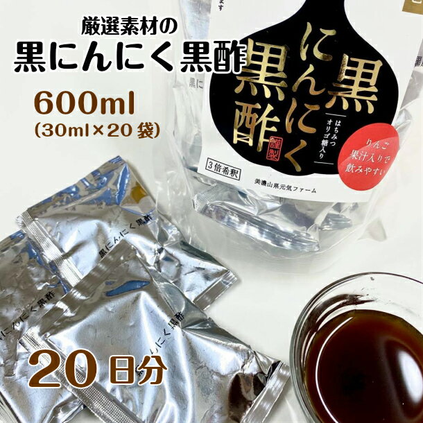 【黒にんにく黒酢600ml(30ml×20袋入)】国産 岐阜県産 黒にんにく使用 20日分 愛知県産 無添加 無着色 調理酢 はちみつ りんご果汁 オリゴ糖| 黒酢くろす くろず クロズ 調整黒酢 黒い食品 ドリンク サプリメント感覚 使い切り おうち時間 まろやか 健康 習慣