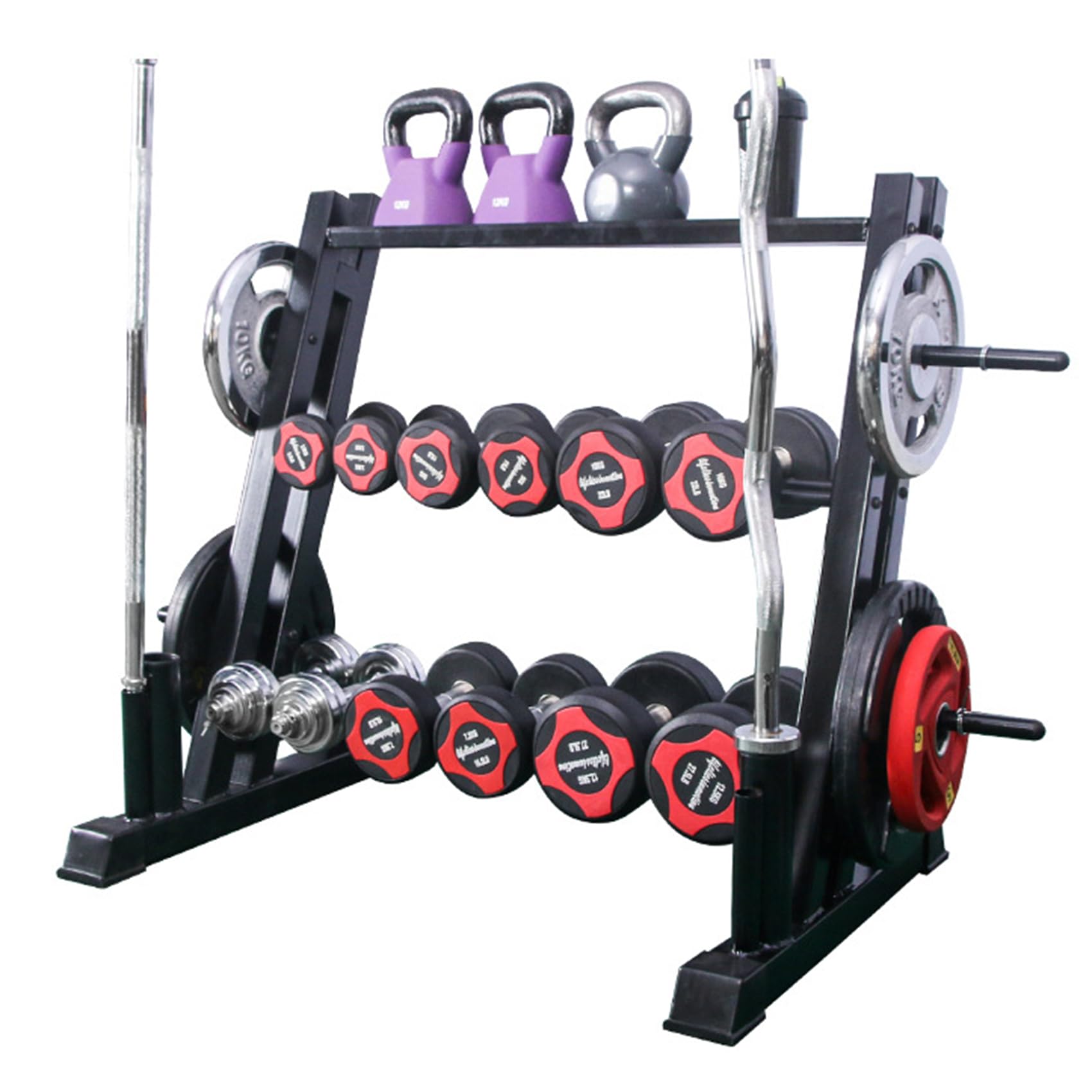 ダンベルラック 3段 床置き ホームジム収納ラック フィットネス用品 ダンベルスタンド ダンベル置き 鋼鉄 各種収納 強力な耐荷重性 トレーニング用品 ダンベル収納ラック 組み立て簡単 重量挙げプレート収納ラック