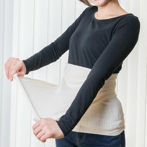 (健まーる) 岩盤浴 綿 リブ型 腹巻 ウェストウォーマー 北投石加工 遠赤外線 ベージュ (L) 3512-B-F