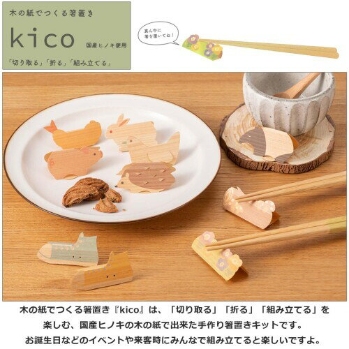 サンライフ 箸置き kico 国産ひのき 木の紙でつくる箸置き お花畑 2個セット 約2.2×5×2cm(1個あたり) 日本製 321140
