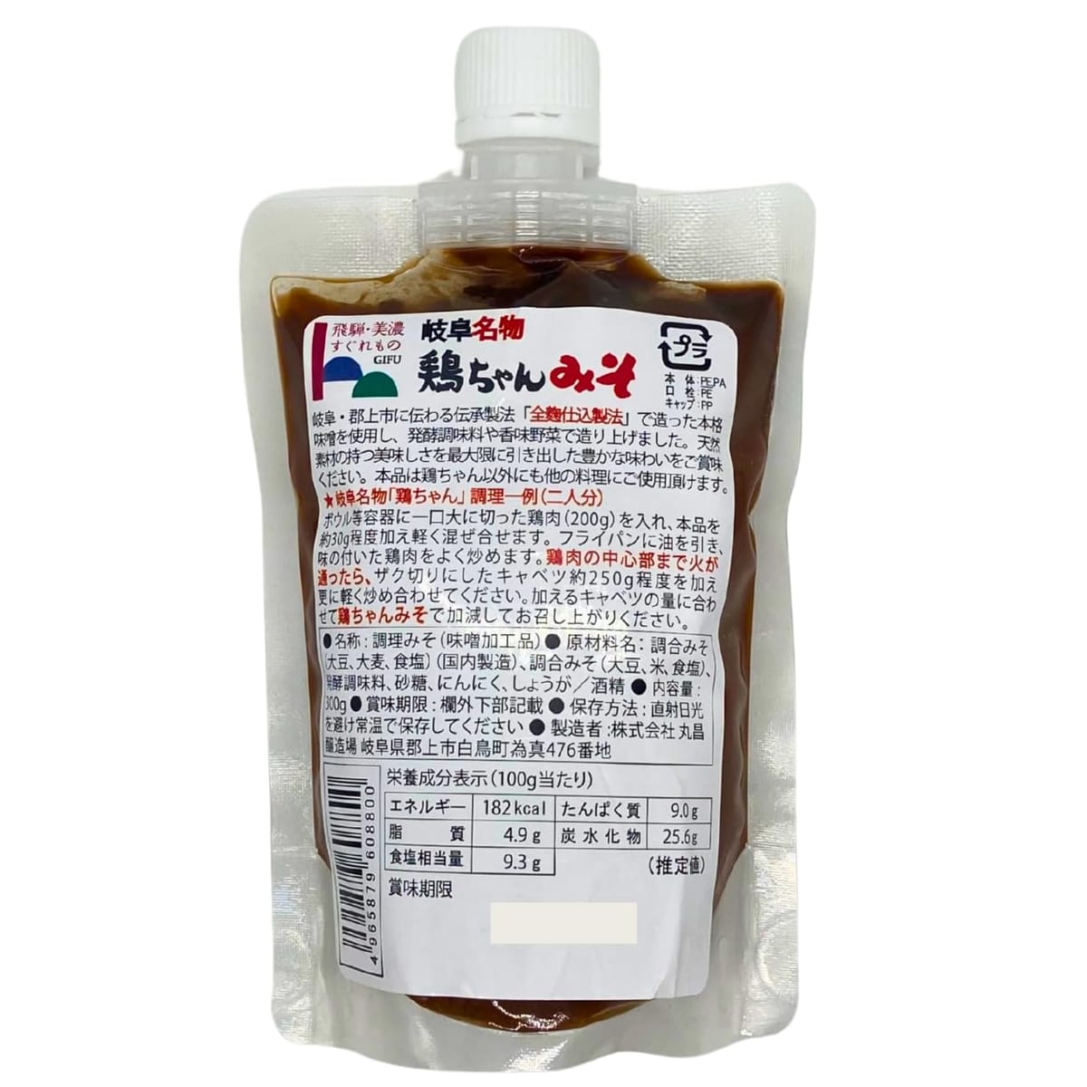 丸昌醸造所 鶏ちゃんみそ 300g ×2個セットです。岐阜県郡上市に伝わる伝承製法「全麹仕込製法」で造った本格味噌を使用し、発酵調味料や香味野菜で造り上げました。天然素材の持つ美味しさを最大限に引き出した豊かな味わいをご賞味ください。 丸昌醸造所 鶏ちゃんみそ 300g ×2個セットです。 岐阜県郡上市に伝わる伝承製法「全麹仕込製法」で造った本格味噌を使用し、発酵調味料や香味野菜で造り上げました。天然素材の持つ美味しさを最大限に引き出した豊かな味わいをご賞味ください。