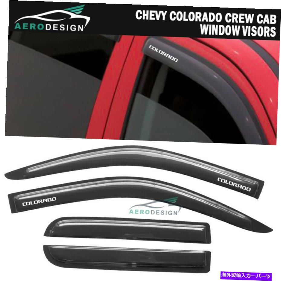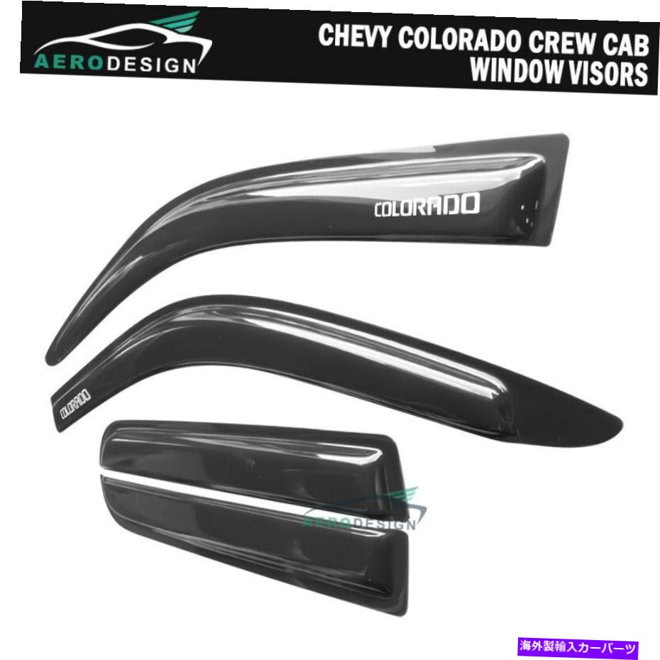バグシールド 04-12のシボレーコロラドクルーキャブウィンドウバイザーレインスモークガードベントデフレクター For 04-12 Chevy Colorado Crew Cab Window Visors Rain Smoke Guard Vent Deflector