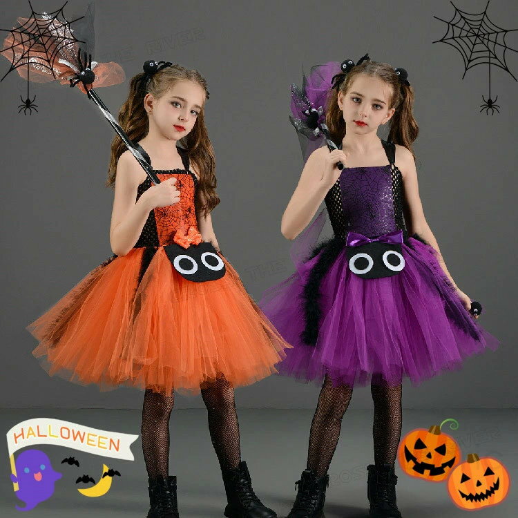 ハロウィン 衣装 子供 女の子 魔女 仮装 コスプレ ワンピース オレンジ 悪魔 ハロウィン衣装 小学生 可愛い デビル ウィッチ 精霊 魔女っ娘 witch 魔法少女 パーティー 誕生日 発表会 イベント クリスマス 学園祭 大人 高校生 cosplay 写真撮影 90-160cm
