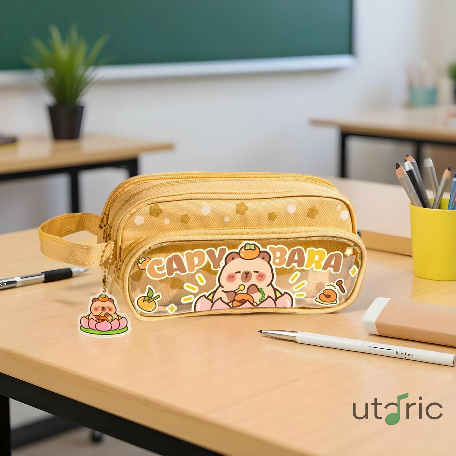 かわいいペンケース 大容量 筆箱 文房具ポーチ | ペン収納ボックス 付箋帳対応 女子学生 図書館 旅行に最適な文具用品