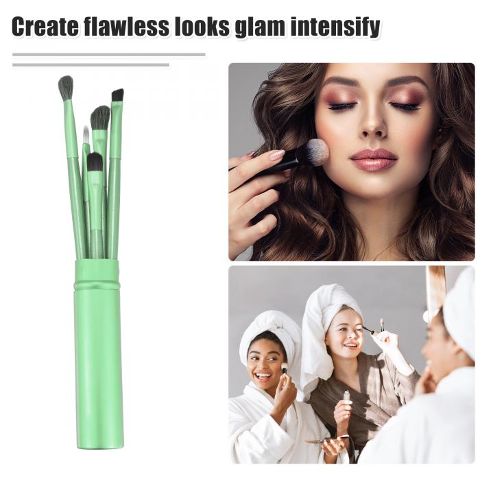 VOCOSTE メイクブラシセット 旅行 ブレンディングファンデーション コントゥア コンシーラーブラッシャーブラシ 15.3x2.3 cm グリーン 5個
