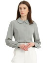 Allegra K ブラウス レディース 長袖 シフオンブラウス 丸襟 可愛い シャツ オフィス カジュアル トップス 着痩せ おしゃれ 通勤 OL グレー M