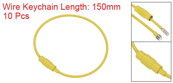 PATIKIL 150 mm長さ ワイヤーキーホルダーケーブル 10個 チタンスチール製 キーホルダーループ アウトドア ハイキング スポーツ用 イエロー