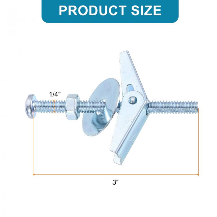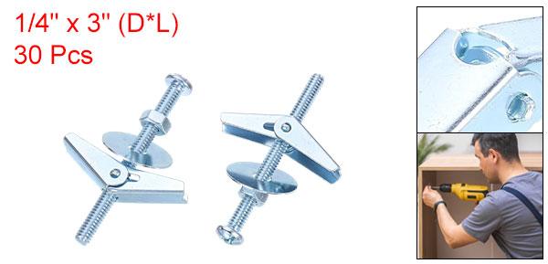 uxcell トグルボルトウィングナットアソートメントキット 30セット1/4x3"バタフライトグルアンカーとウィングナット 六角ナット ワッシャー ホロードライウォールアンカー