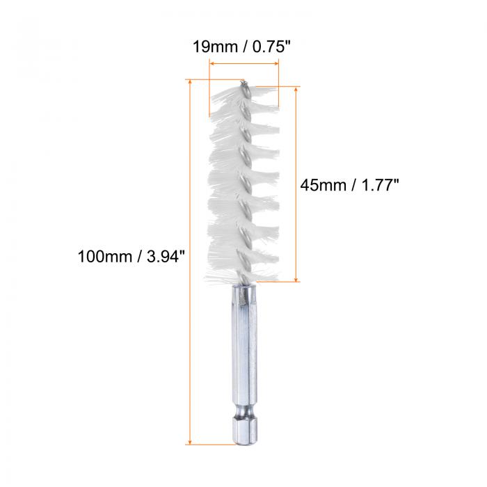 uxcell 5個入り ナイロンボアブラシ 19mm直径 10cm長さ ハンドル付き清掃用ツイストワイヤーブラシ 6.35mm六角シャンク チューブポートベアリング用