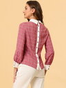 Allegra K チェック トップス シャツ コントラストカラー ボタンバック レディース ピンク M