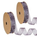 PATIKIL オーがんザスターリボンワイヤード 2ロール1インチ幅20ヤードクリスマスツリープリントシアーグリッターリボン ギフトラッピングガーランドブーケオーナメントパーティーデコレーション パープル