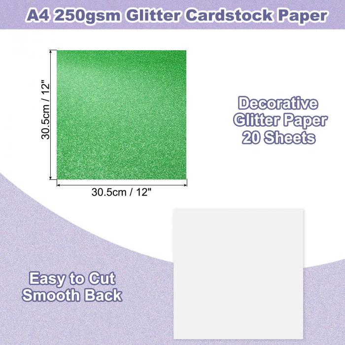 PATIKIL 20枚 グリッターカードストックペーパー A4 250GS M DIY パーティー 応援うちわ 手作り クラフト スク ラップブック装飾用 グラス緑