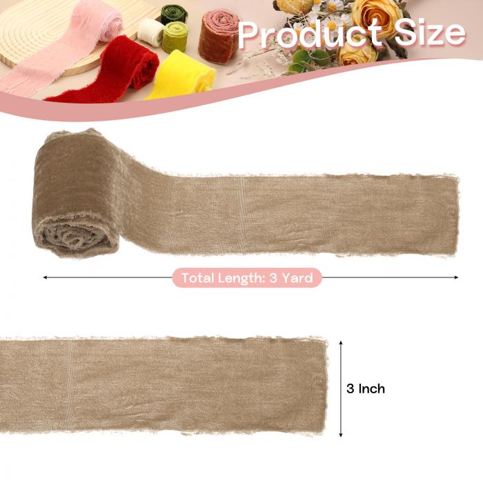 uxcell 1枚のベルベットリボン、3インチ×3ヤード、手作りシルクフリンジフレイ ドリボン、花束包装、ウェディングデコレーション、ブ ライダルDIYクラフト用、茶色