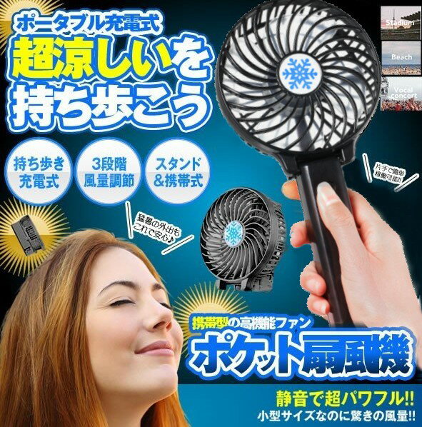 ポケット扇風機 《ピンク》 USB 充電式 携帯扇風機 冷風扇 卓上扇風機 ハンディーファン[ゆうパケット発送、送料無料、代引不可]