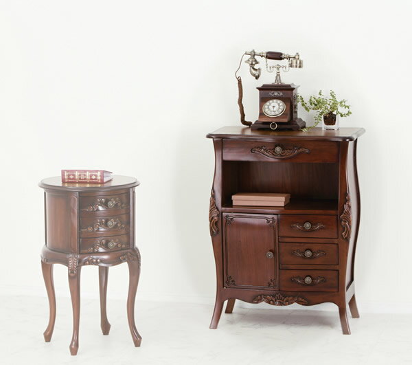 天板はレザー調の特殊な仕上げになっておりますので、高級感があります。 手彫り仕上げ、引出内部の底はフェルト貼りなど、細部にまで工夫を凝らしております。玄関やリビングでもお使いください。 【天然木マホガニー】とは・・彫刻に適した高級木材。強度・加工性の良さから高級家具・楽器・彫刻・内部装飾に使われます。 【サイズ】W60×D35×H79cm 【重 量】約14.5kg 【商品詳細サイズ】 引出内寸(上1杯)約W44×D22.5×H3cm (下3杯)約W19.5×D20.5×H6.5cm 空間内寸約W47×D28×H20cm 扉内内寸約W22.5×D26×H31.5cm 【材 質】前板・脚は天然木、天板は中質繊維板、側板は天然木化粧合板、ラッカー塗装 【仕 様】完成品 【生産国】インドネシア ※北海道・沖縄・離島の一部地域や山間部への配送をお受けできない場合がございます。 ※在庫切れの場合がございます。 ※配送不可地域や在庫切れの場合、ご注文をお取り消しさせて頂く場合がございます。あらかじめご了承ください。 ※色調が一部実物と異なる場合がございます。天板はレザー調の特殊な仕上げになっておりますので、高級感があります。 手彫り仕上げ、引出内部の底はフェルト貼りなど、細部にまで工夫を凝らしております。 玄関やリビングでもお使いください。